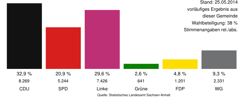 Quelle: Mitteldeutsche Zeitung - http://www.mz-web.de/koethen/stadtratswahl-in-koethen-linke-pirscht-sich-an-die-cdu-heran,20641024,27253766.html